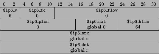 The macro IP6_HDR builds an IPv6 header, as defined in [RFC2460]. The macro IP6_PCK is synonymous to IP6_HDR, except that it also sets the protocol to ETH_P_IPV6 with ``default'' priority.